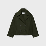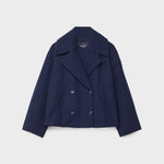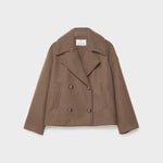 Eine doppelreihige Damenjacke mit klassischem Schnitt und vielseitiger Kombinierbarkeit für Übergangszeiten.